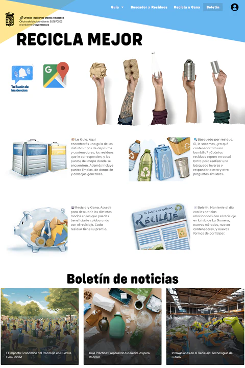 Portal accesible y detallado de información y concienciación de reciclaje, donación, y gestión ambiental con enfoque en la participación ciudadana y la experiencia de usuario.